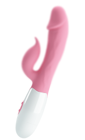 Потрясающий вибромассажер-кролик с клиторальным отростком и ярко выраженной головкой.